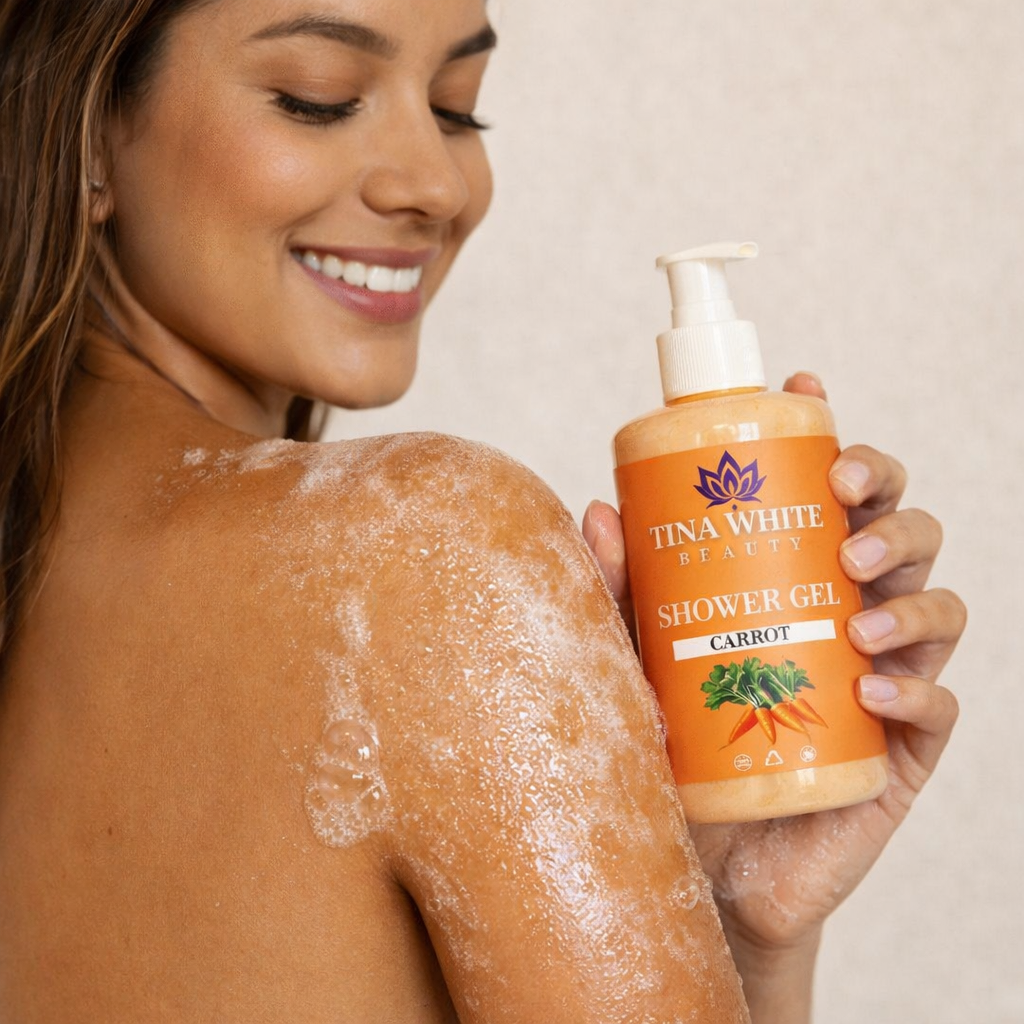 Carrot Glow Shower Gel gently cleanses, nourishes, and enhances skin radiance for a soft, smooth, and healthy glow every day.